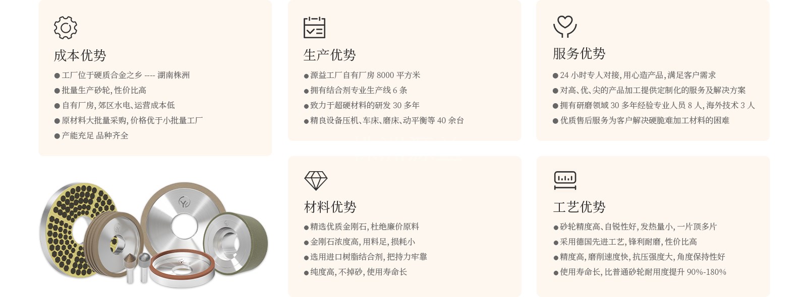 ? 精度高,磨削速度快,抗壓強(qiáng)度大,角度保持性好